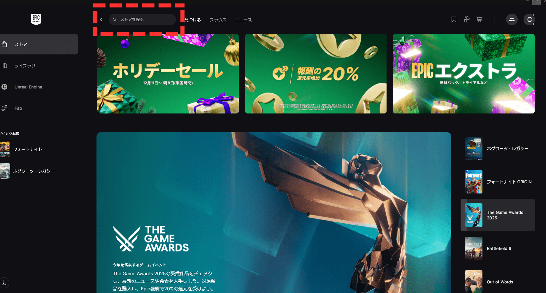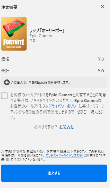 フォートナイト内のショップからの購入ではなく、【エピックゲームストア】から購入が必要です。