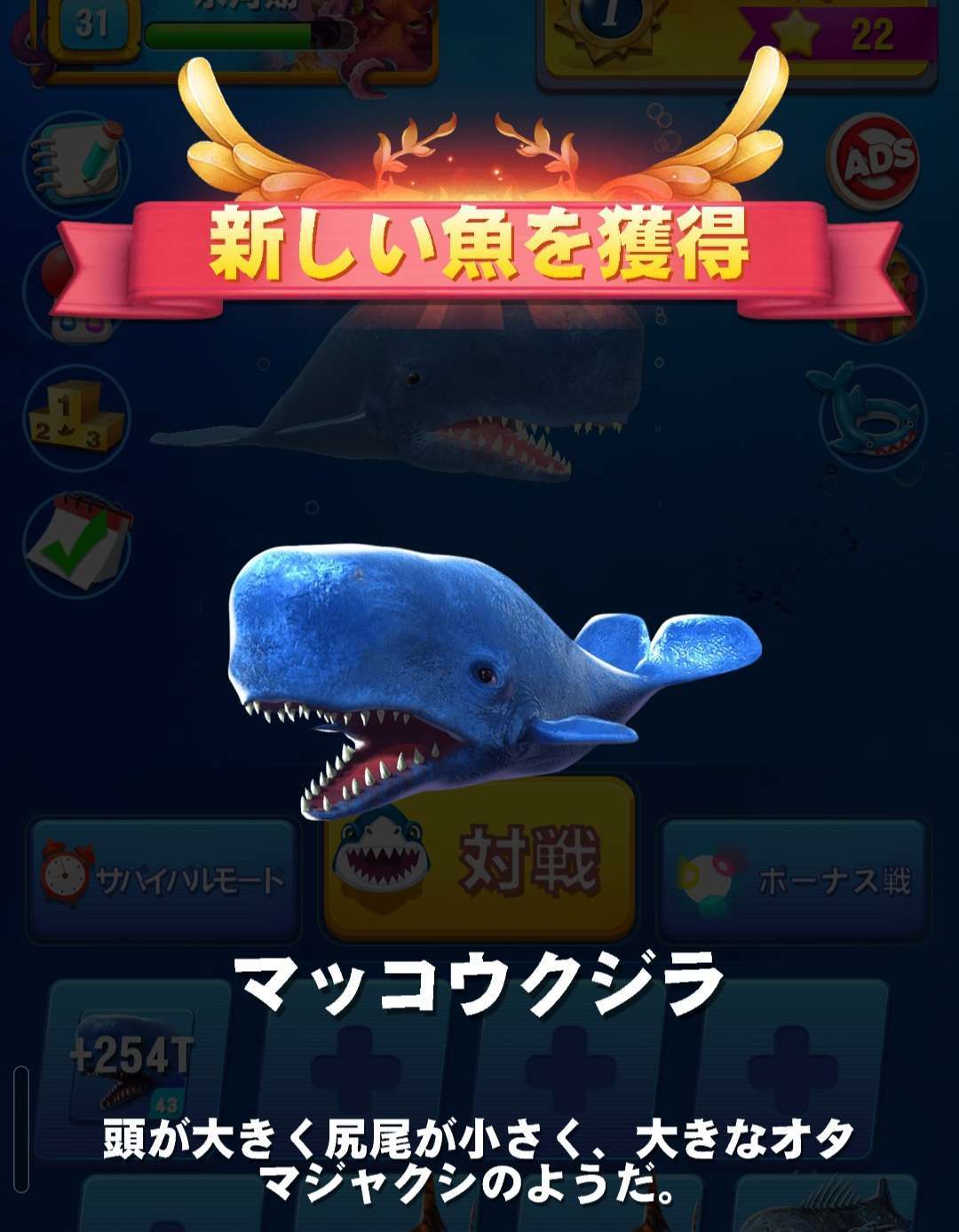 サメサメ進化論のLv.43 マッコウクジラのアンロック達成でした。