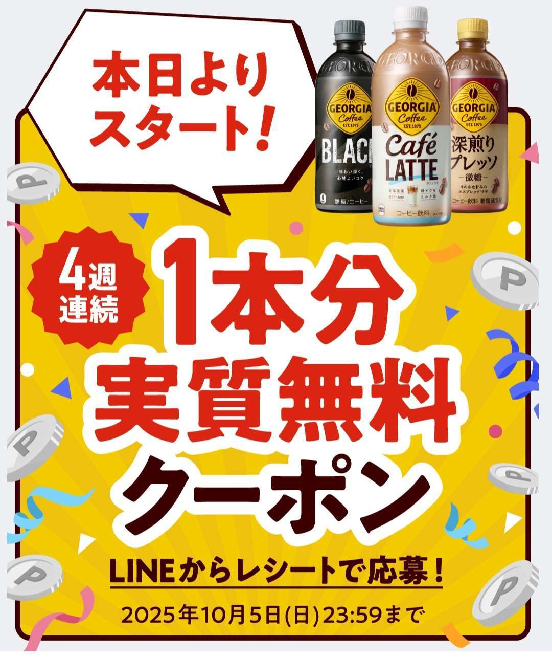 ジョージアのコーヒーが4本、実質無料どころかおこづかい付き!?お得なキャンペーン開始!2025年10月【ポイ活】