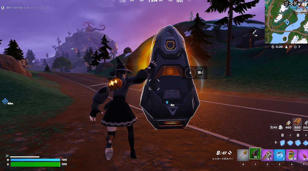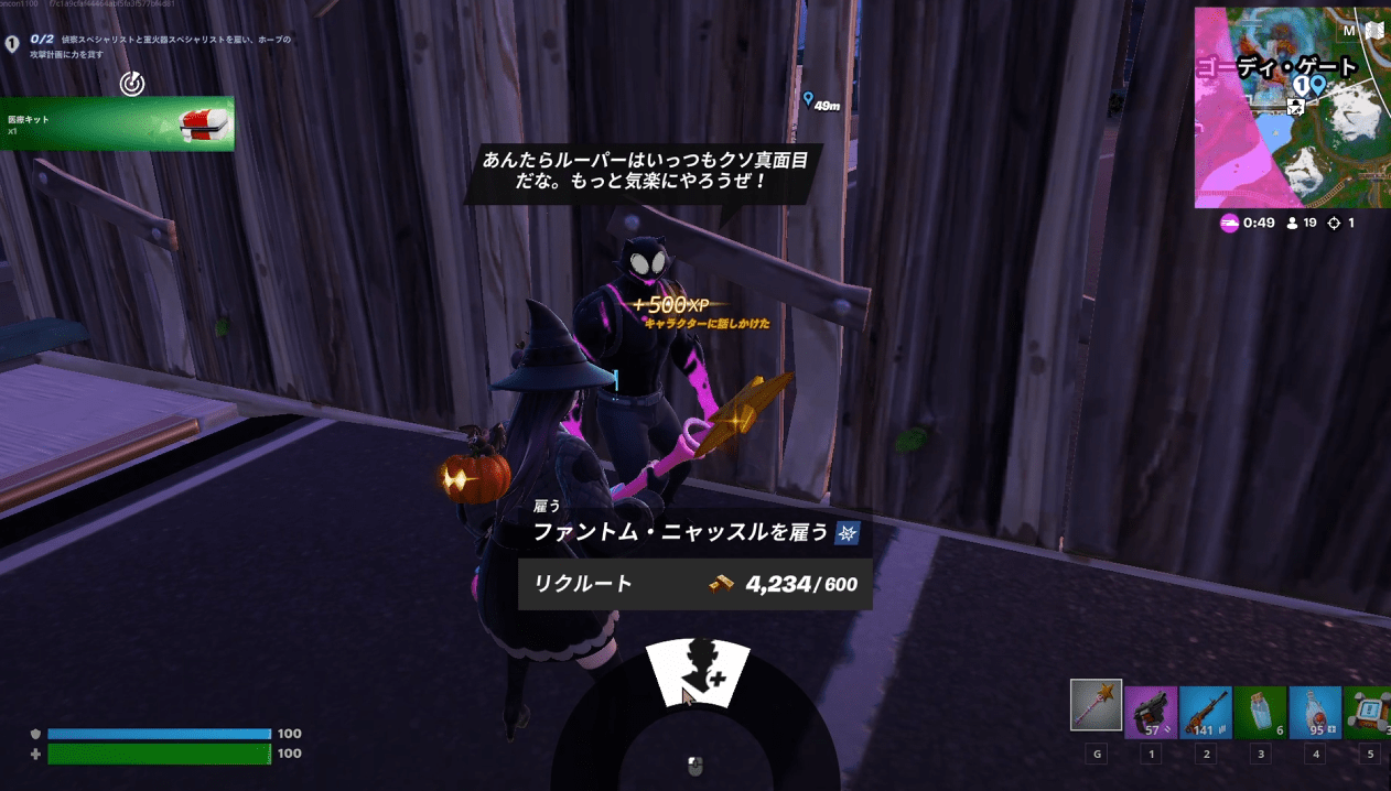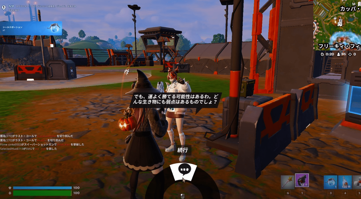 話しかけるだけなので簡単なのですが、マップの端と端で遠いので1マッチで終わらせるには車必須です。