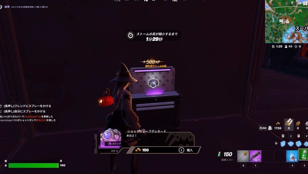 武器以外でもレアリティがエピック以上であれば対象だったので、私は元闇市のように武器やアイテムをインゴットで買うことができる場所でショックウェーブを6こ(2つずつでセットなので3回)購入してクリアしました。