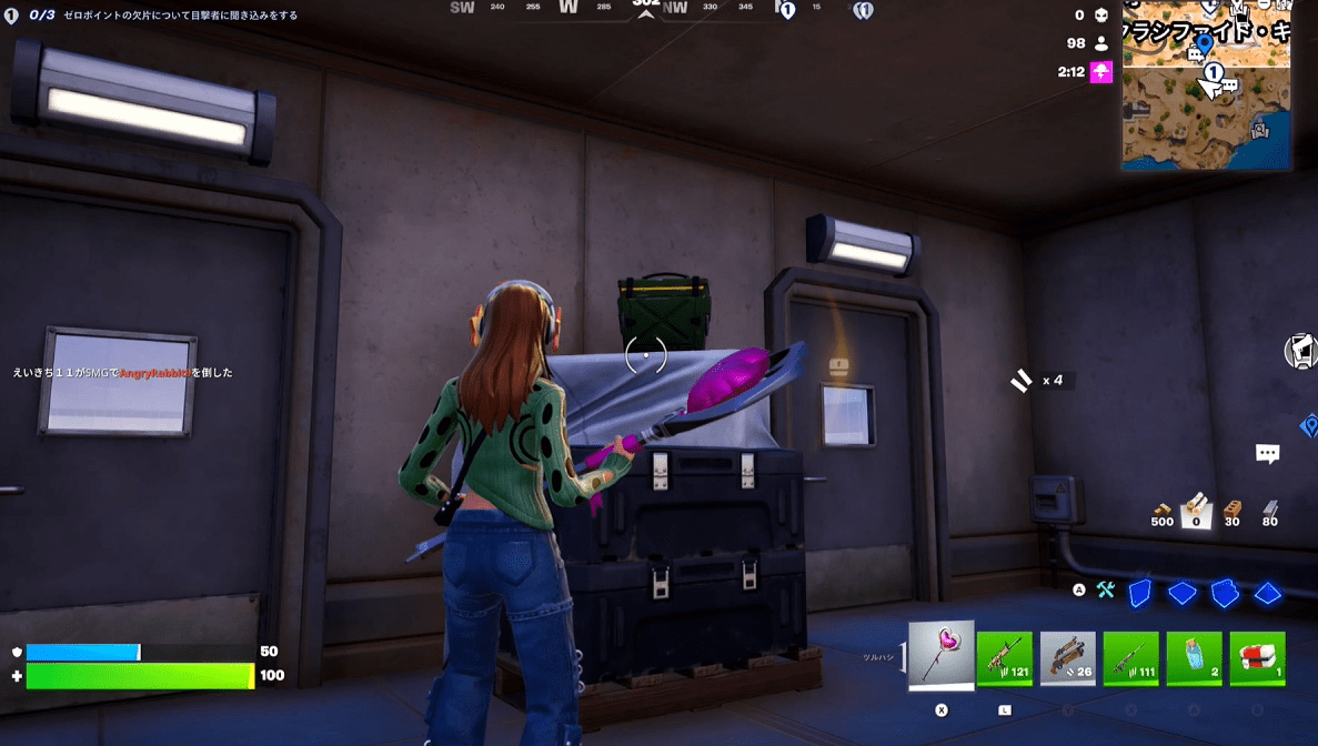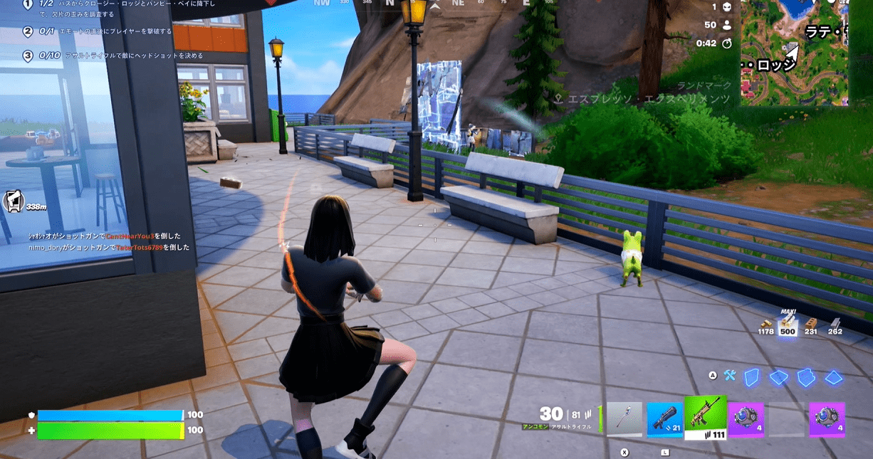 エモートをしたすぐ後にプレイヤーを1人撃破することができればクリアです。