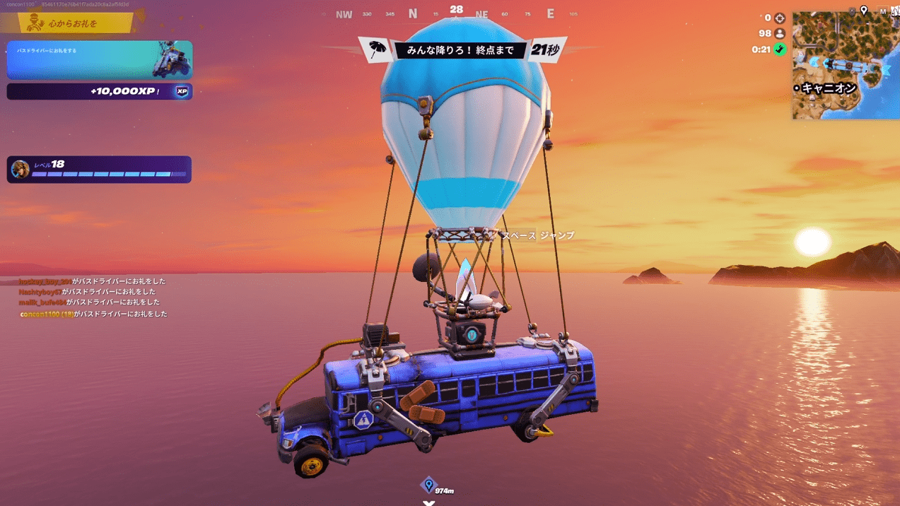 マッチが始まってバトルバスから降りる前にお礼をします。