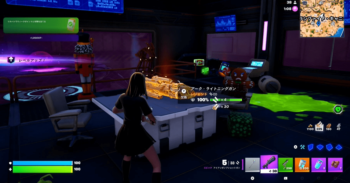 レジェンドのアーク・ライトニングガンとレアレア宝箱が2つ確定です。