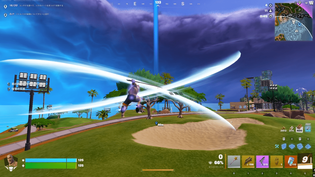 マップで黄色の背景に刀のマークが表示されている場所にいくとゲットすることができます。