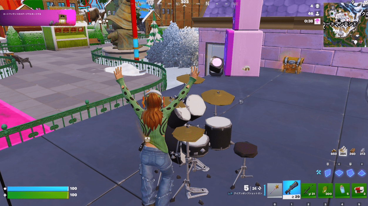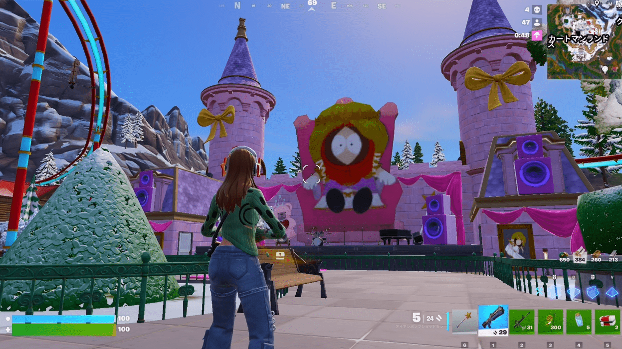 カートマンランドの東側にあるステージの上でエモートをすればクリアです。