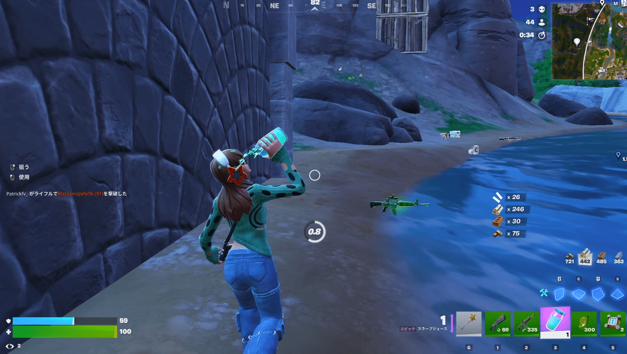 体力回復アイテム(医療キット、包帯、チージープーフなど)やシールドの回復アイテム(ミニポーション、シールドポーション、チャグジャグ、スラープジュースなど)を合計で2回使うことができればクリアです。
