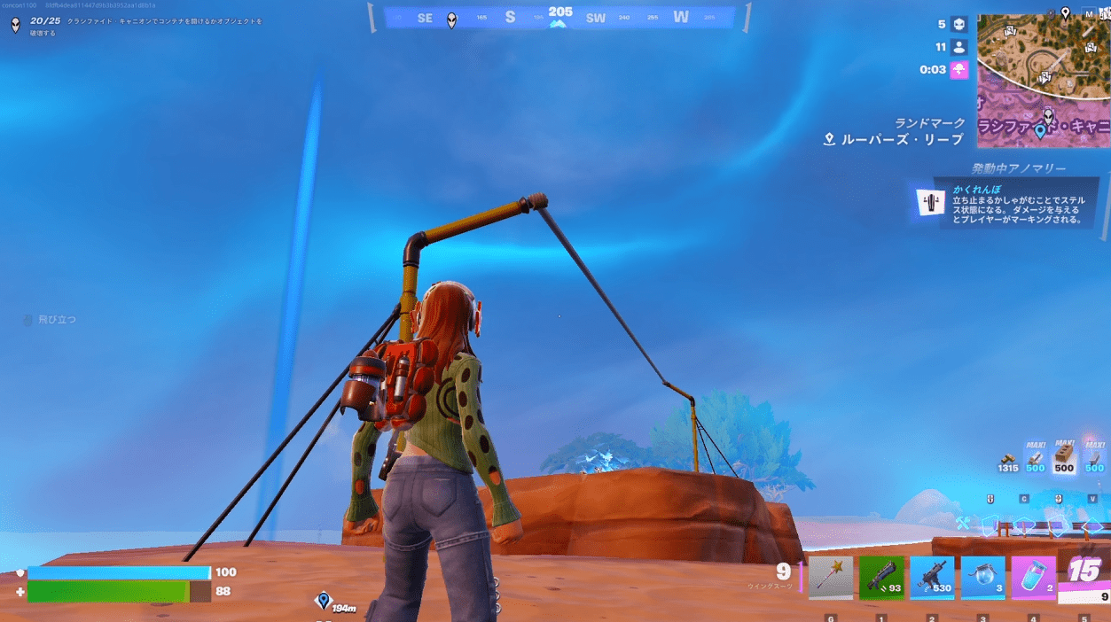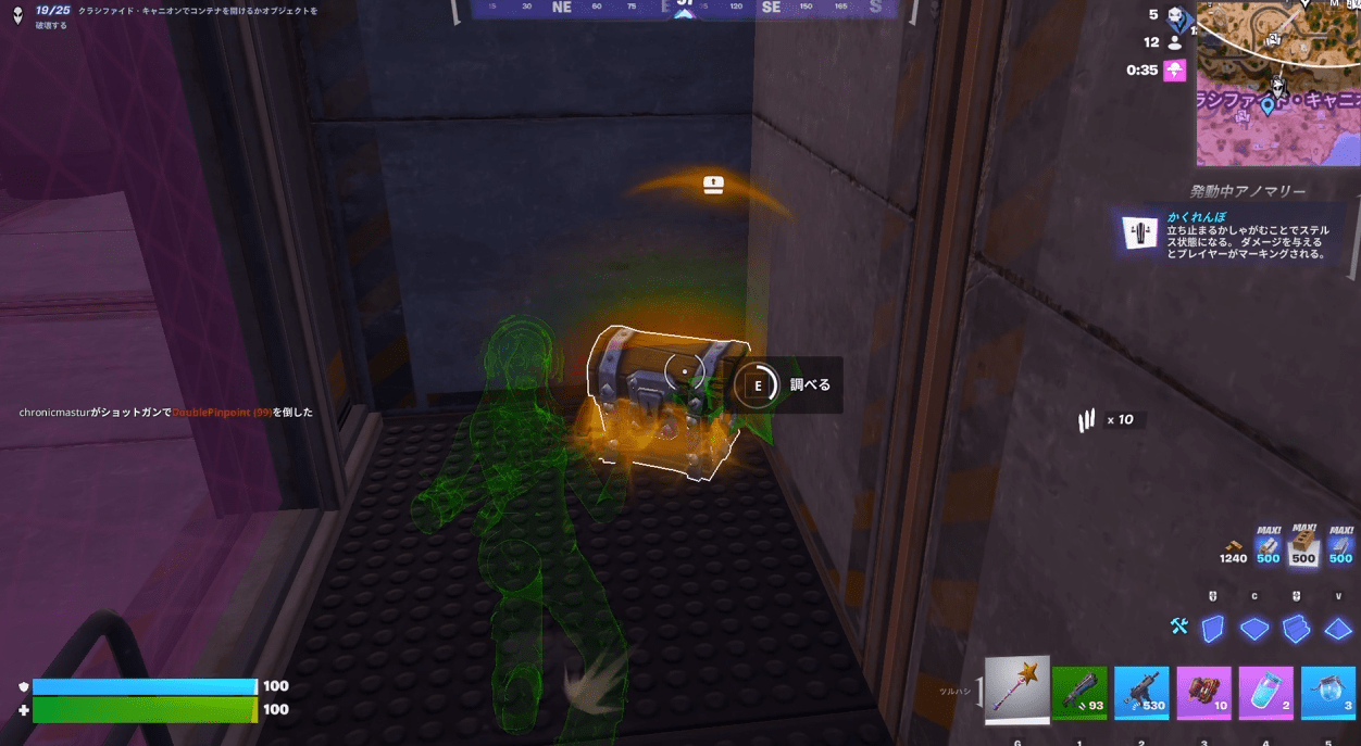 クラシファイド・キャニオンで宝箱、弾薬箱を開けるか建築物を破壊を合計25こでクリアです。