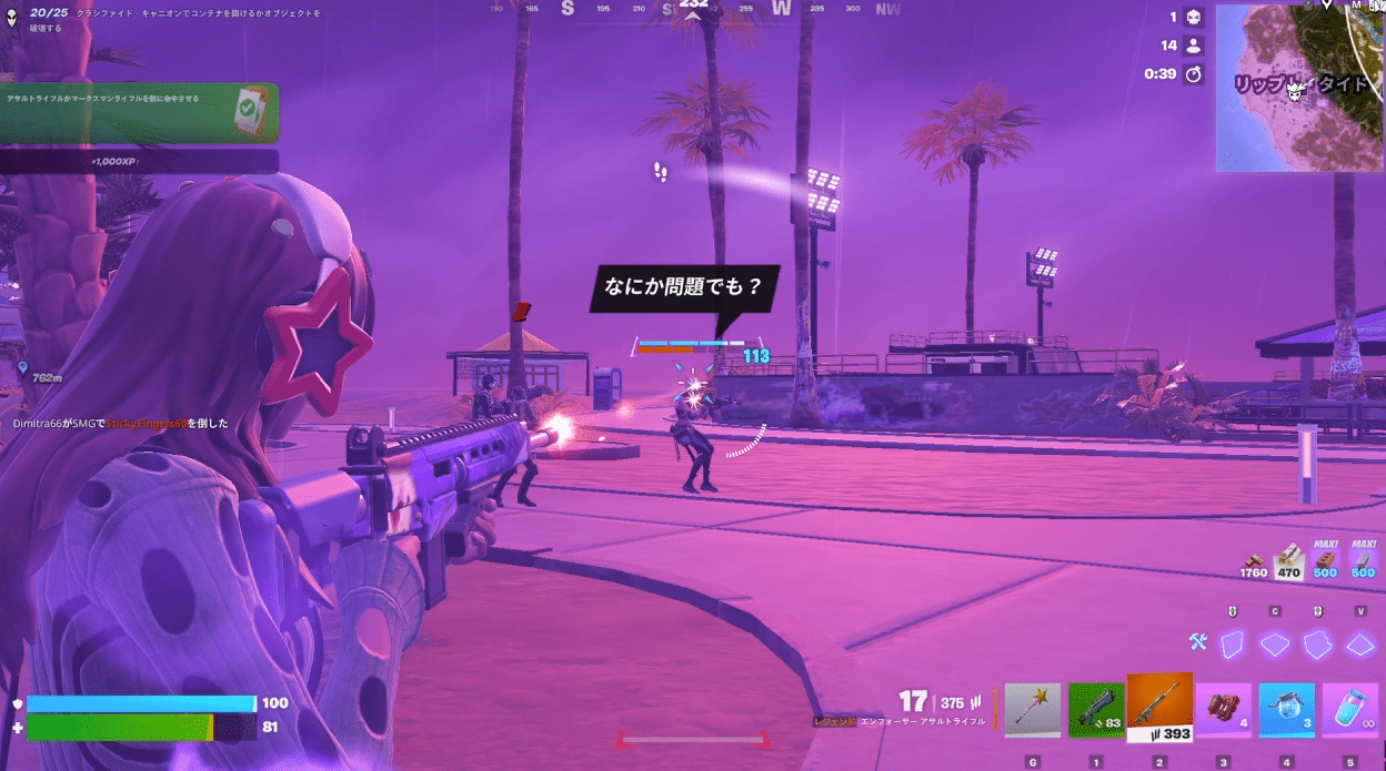 名前や説明に【アサルトライフル】と書いてある武器を使ってプレイヤーを合計5人撃破します。