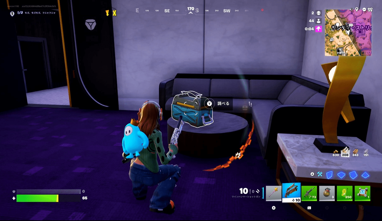 敵に攻撃ができないので人がいないところや安地外(ストームのダメージを受けるところ)などでなるべく敵を避けて過ごします。