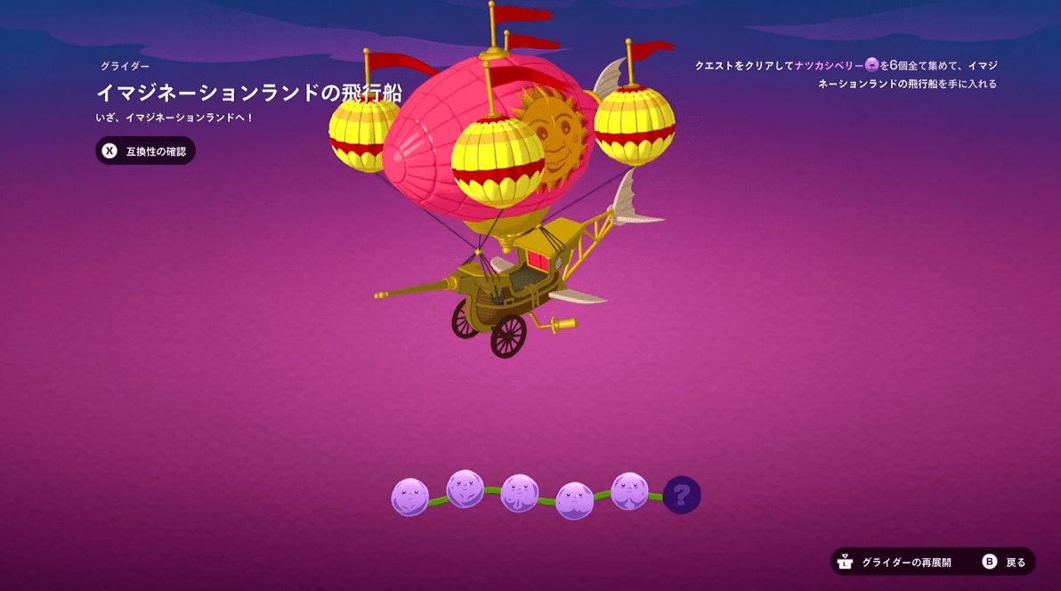 ナツカシベリーを全部で6こアンロックするとグライダーがゲットできます。